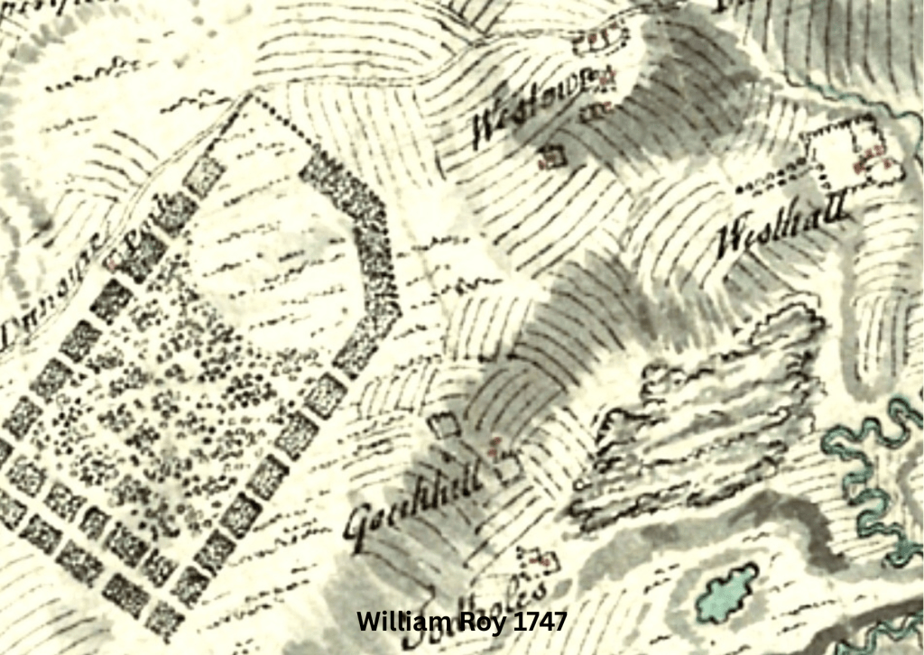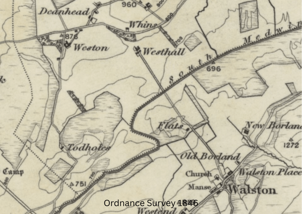 I began by studying maps using resources at the National Library of Scotland. These can be searched by place name and the entirety of available digitised maps appears. https://maps.nls.uk/geo/find/marker/#zoom=15&lat=55.7098&lon=-3.5217&f=1&z=1&marker=55.7099,-3.5311&from=1449&to=2001&i=188145660