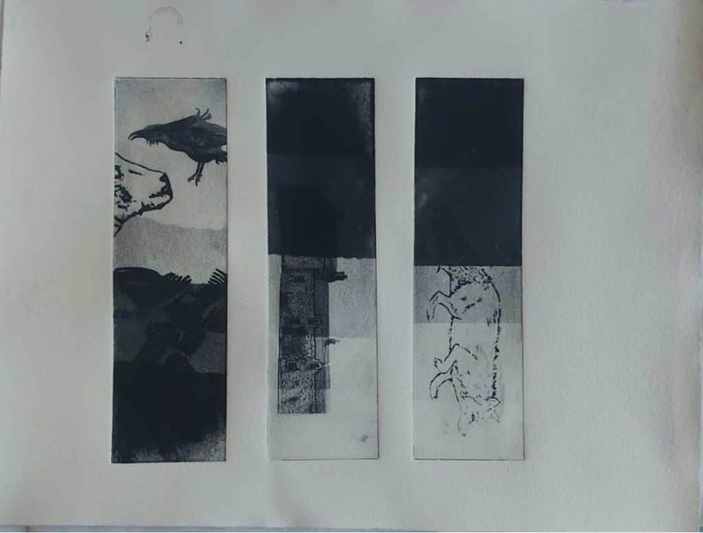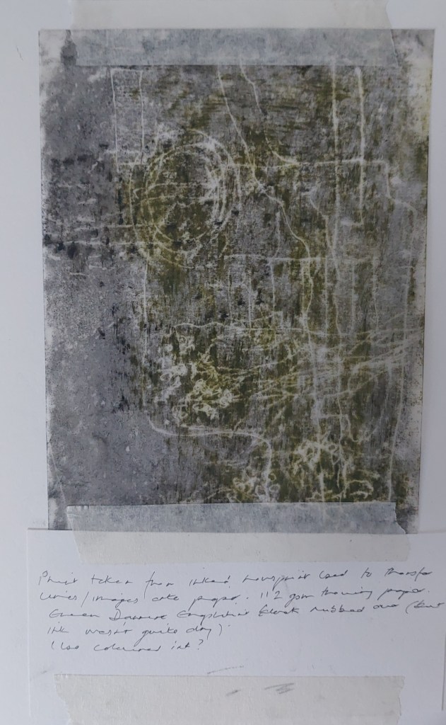 I also experimented with monoprinting. in case I might want to monoprint instead of or as well as etch images.
