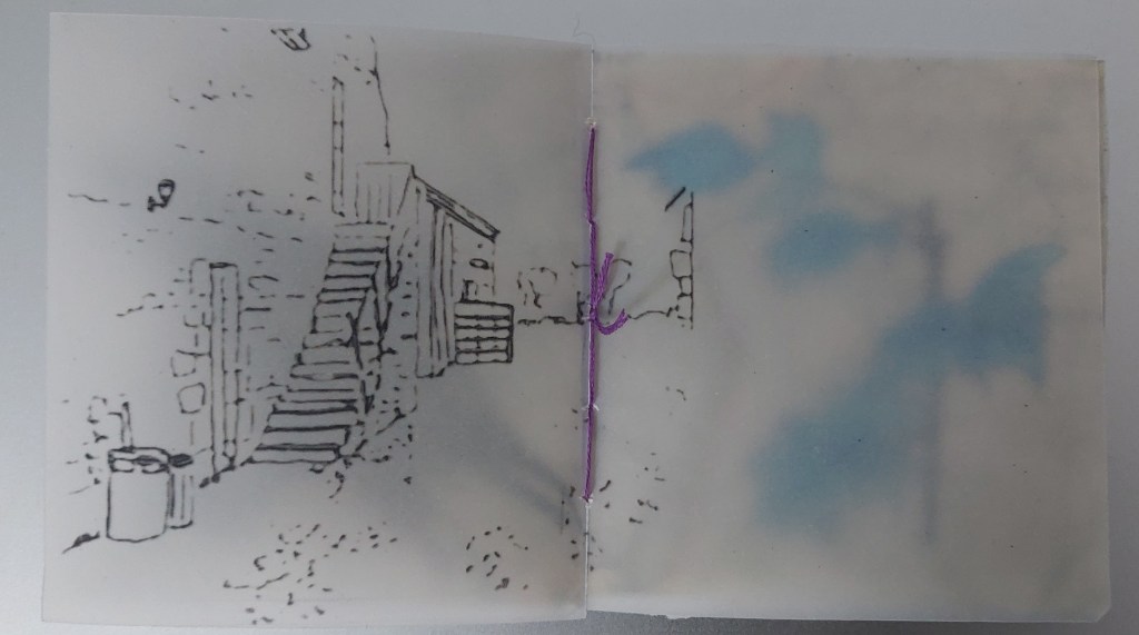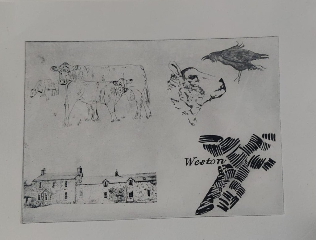 I decided to make a concertina book incorporating printmaking as the medium form my former farm of Weston as the subject.