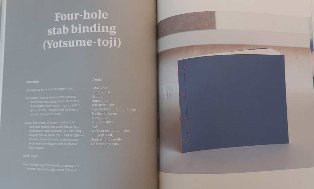 I experimented with using an awl and bone folder and stitching in pages using three holes.