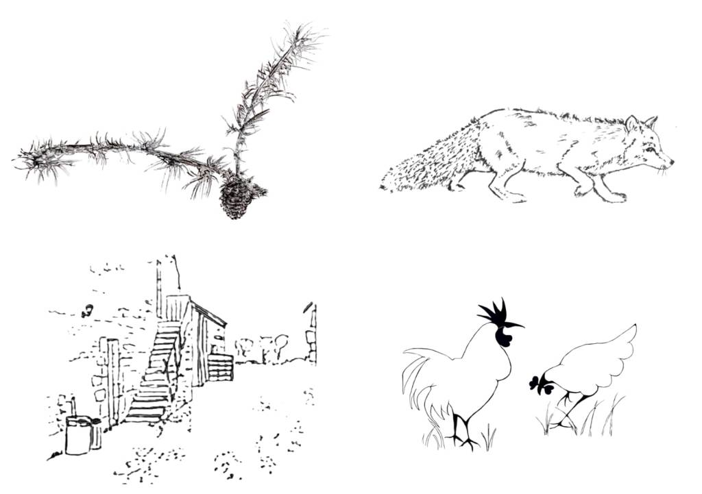 I then thought about some of the sorts of things would be seen on the farm throughout the centuries, to show continuity as well as change.