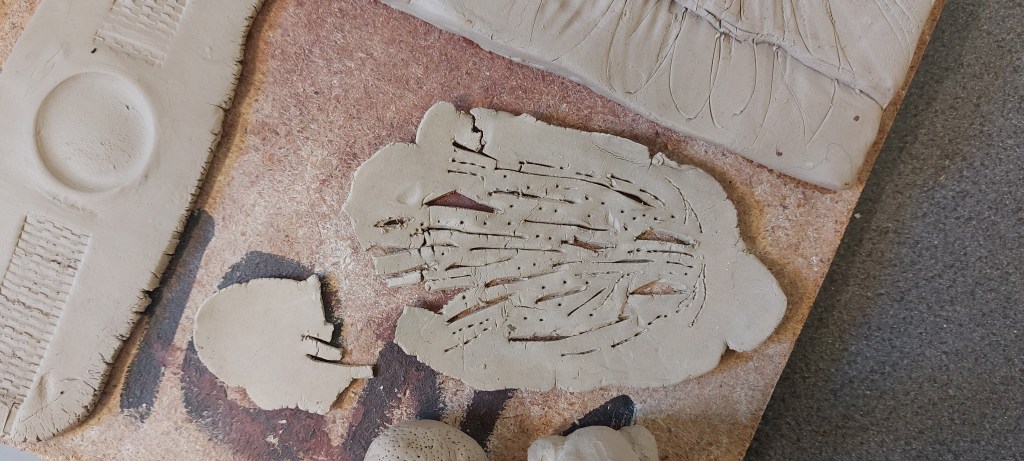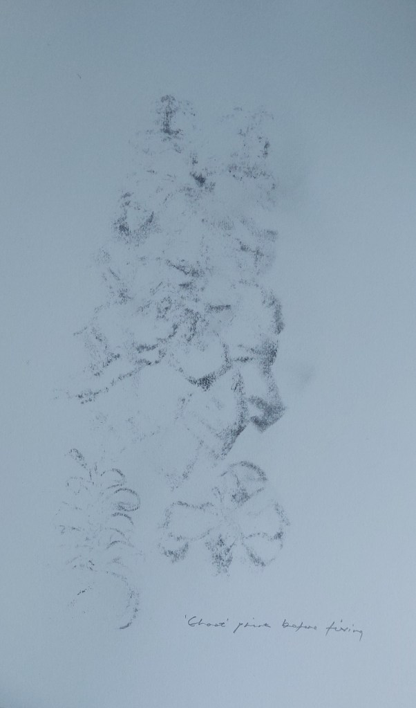 Clay rolled out and incised to resemble idea of imprinted form within the structure of the cone, a prototype of what it will become when seeded and matured.