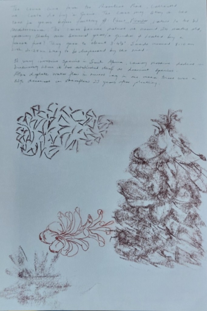 Some of my thoughts about what the pine cone means and what it means to me. Interesting that the particular species to which my cones belong is a massive, invasive destroyer of habitats when transplanted out of it’s native environment – it’s a particularly greedy consumer of precious water. Reminds me that I also dislike being out of my native habitat and no doubt also over-consume natural resources whenever I leave it.
