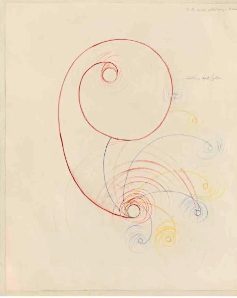 Hilma of Klint, study for Paintings for the Temple, 1906-15. Organic forms exploring spirals as sacred geometry, connecting the golden ratio to principles of cosmic order. The ‘mother’ of abstraction?