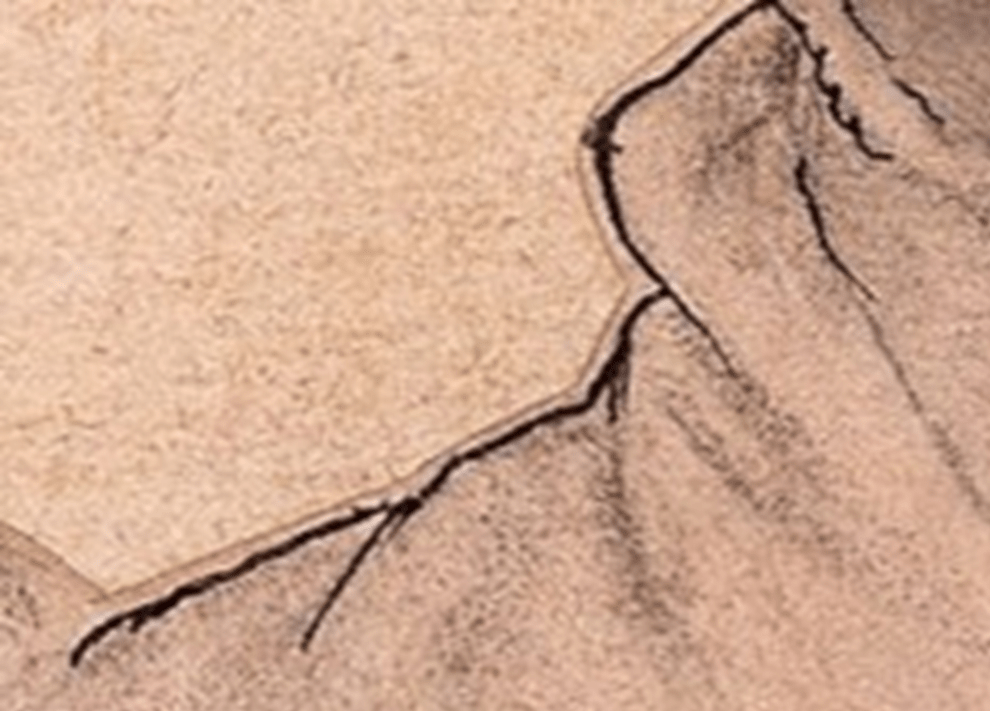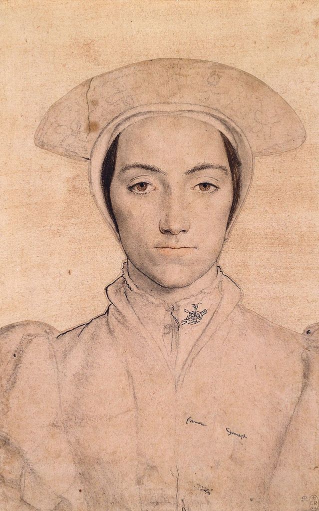 I tried this out for myself, looking a old masters. For example, looking at a close-up of a work on paper by Hans Holbein of Amalia of Cleves from around 1538, the abstract becomes immediately visible.