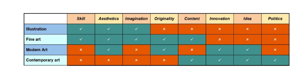 - Skill, aesthetics, and originality are secondary, irrelevant, or repugnant.